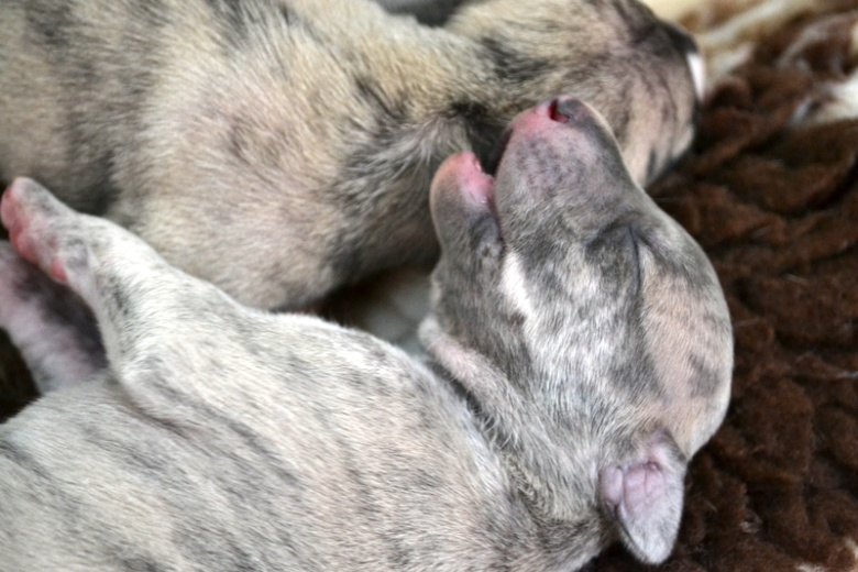 ...har börjat att öppna ögonen nu. Helt underbara ligger dom där i lådan och kikar. Dom är så stadiga och fina, deras duktiga mamma har mycket mat åt dom, så det är idelt nöjda och tysta knoddar. Älskade valpar!! <3