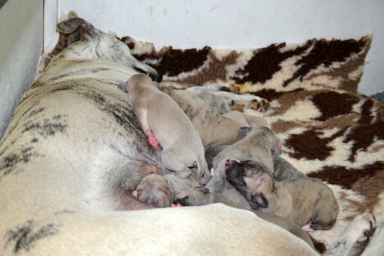 Vi börjar med dagens bild på valparna & kan berätta att Kakan överraskade oss morgonen därpå med ännu en tikvalp, så nu är dom 9 stycken! Mor & valpar mår bra, och vi är så glada över denna kull!