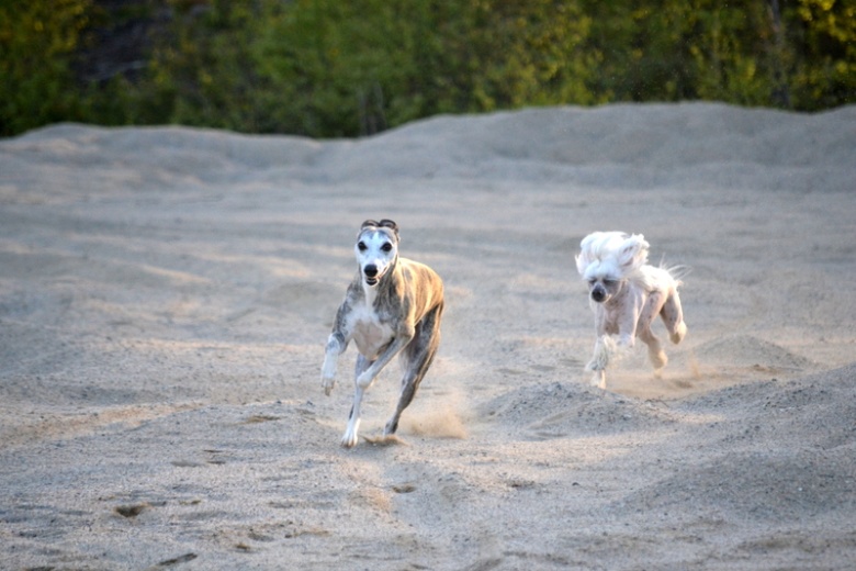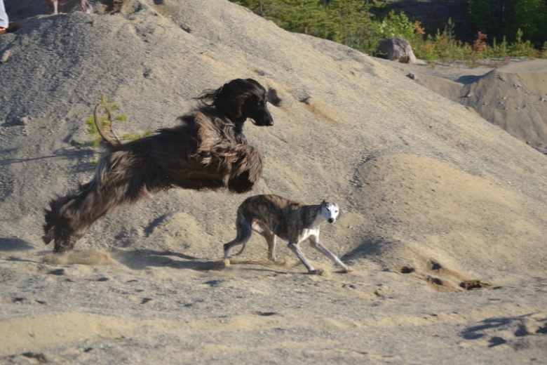 Efter utställningen for vi till sandtaget med Adamo & Strumpan. Hon tyckte nog att han är en stolle... ;)