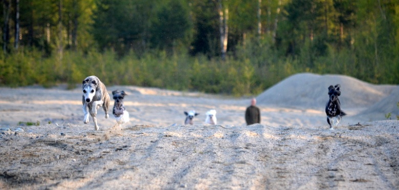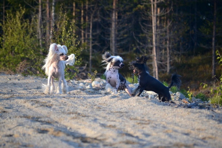 Efter att ha grillat med en god vän gick vi en sväng i sandtagen, hundarna älskar att busa där. Kakan tar det lugnt, hon är rädd om sin stora. fina mage.