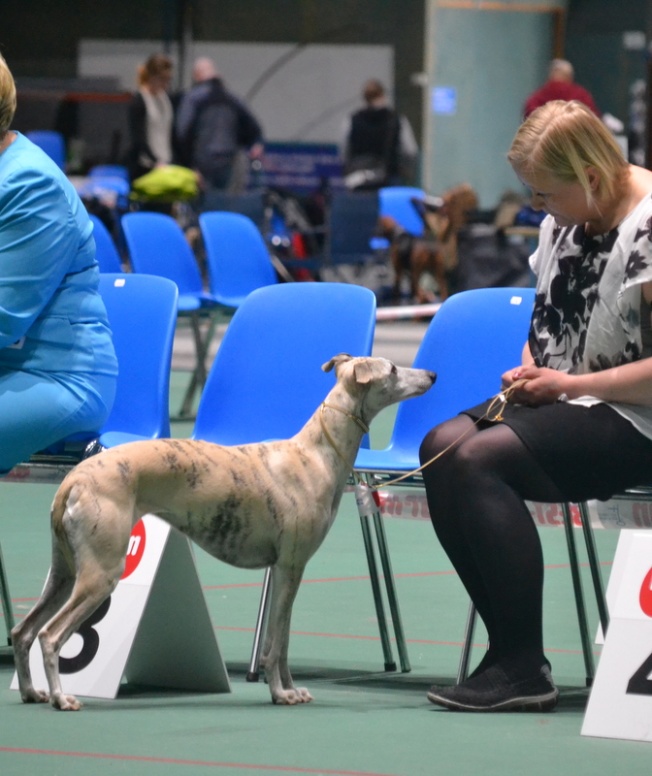 Idag ställdes Meera som fick ett VG (domaren tyckte hon, 10 mån gammal, var för valpig.