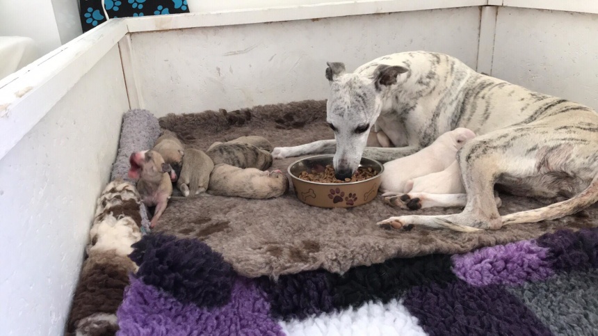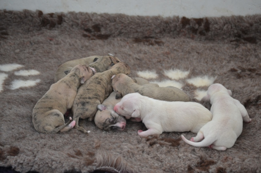 Alla valpar mår bra, är stora och starka. Kakan är, som väntat, en underbara mamma.