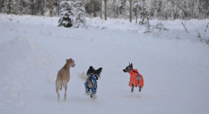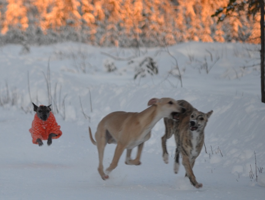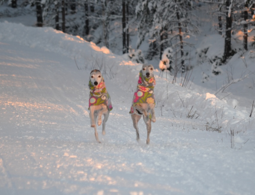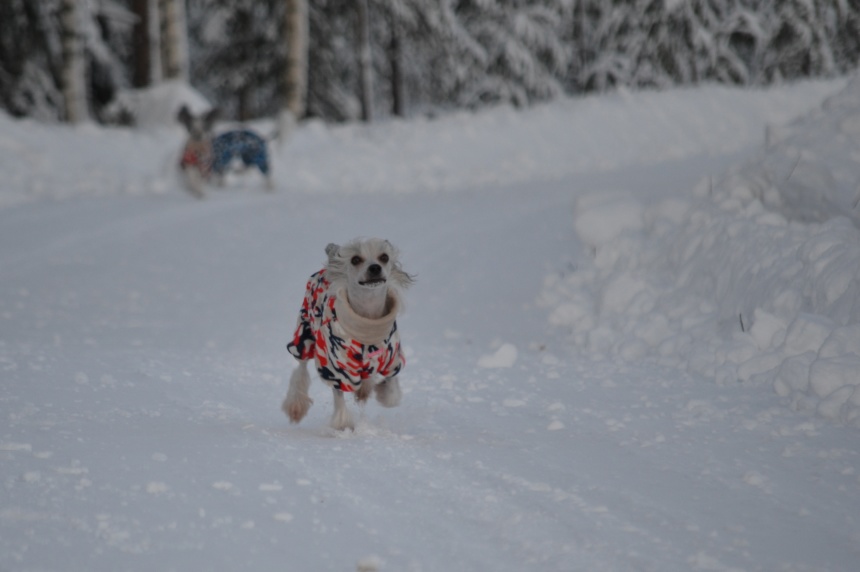 Uma och brorsan Peikko busar allt de bara kan i snön, och de vill knappt komma in. Peikko är såld men bor kvar hos oss tills hans matte & husse kommer hem från varmare breddgrader framåt våren. De längtar verkligen efter honom!