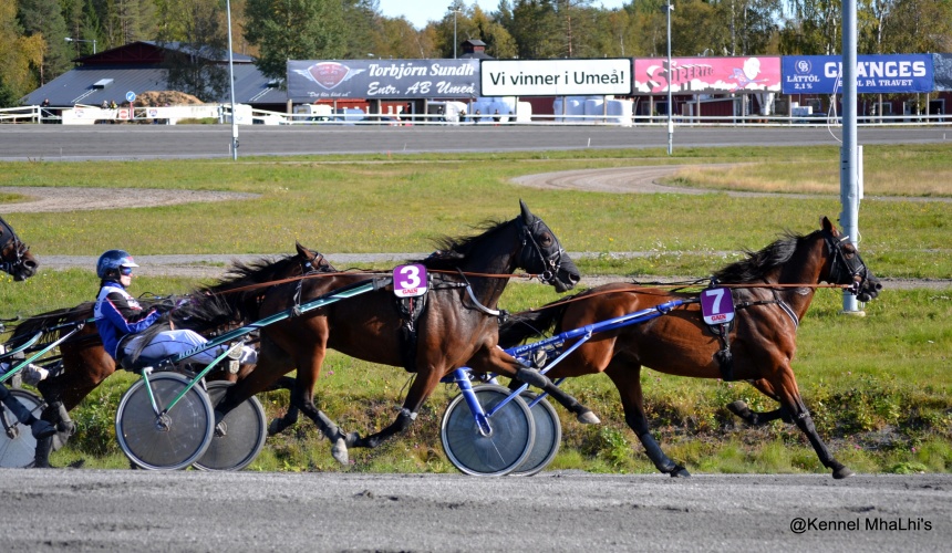 Hästarna visar sig på tävlingsbanorna, och i söndags var Somebody's Promise "Doris" (nr 3) ute på Umåker. Hon gjorde det mycket bra och fick med sig en placering, tungt dövad för att hålla sig lugn och stabil. Nästa gång kanske det blir mindre i öronen för ännu mera fart ;)