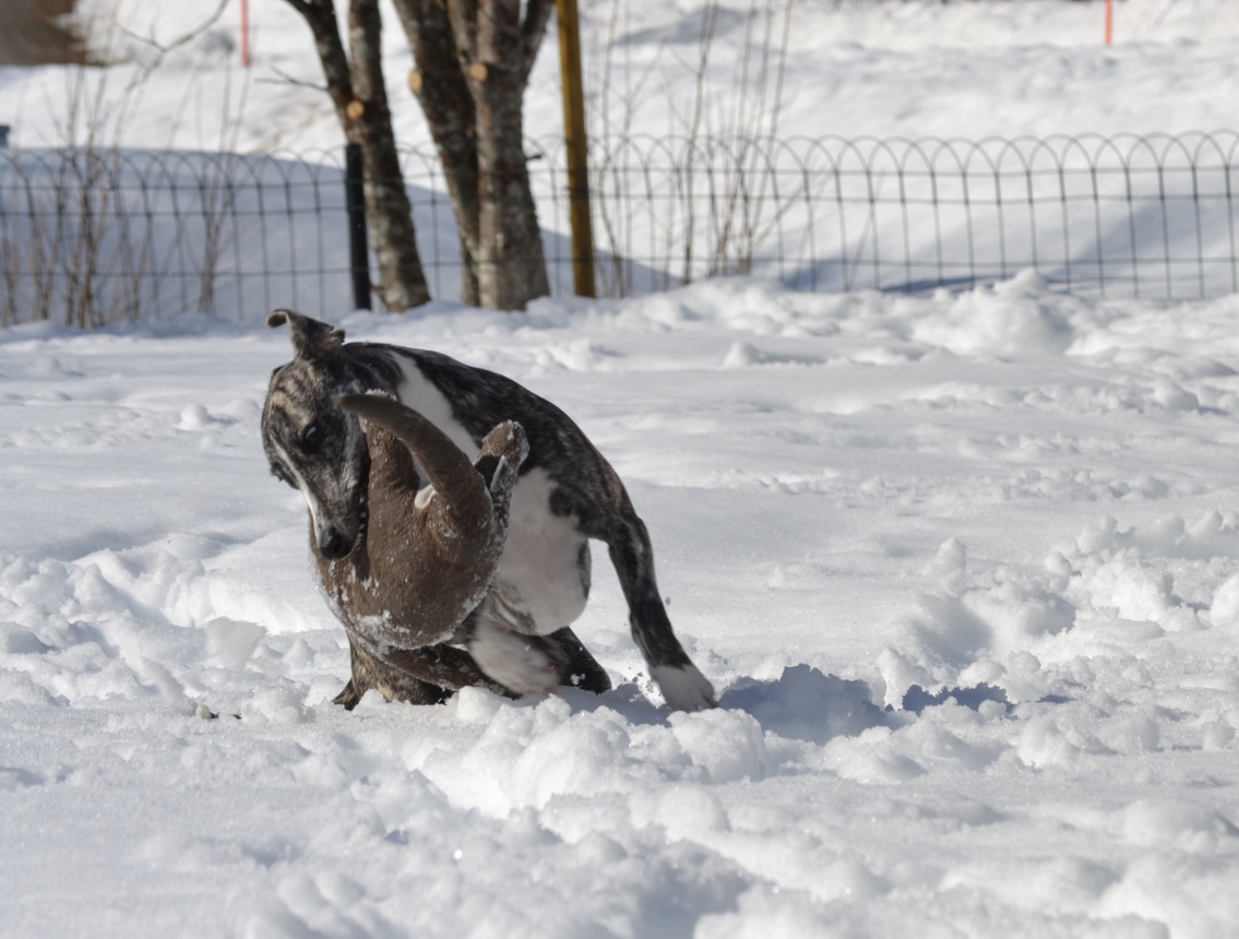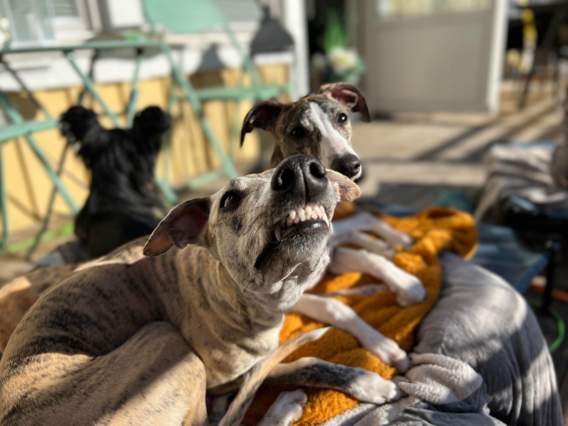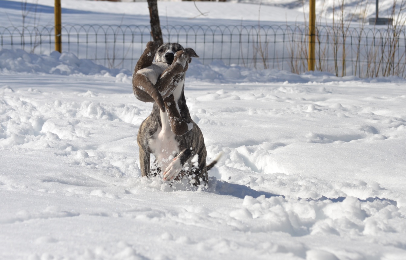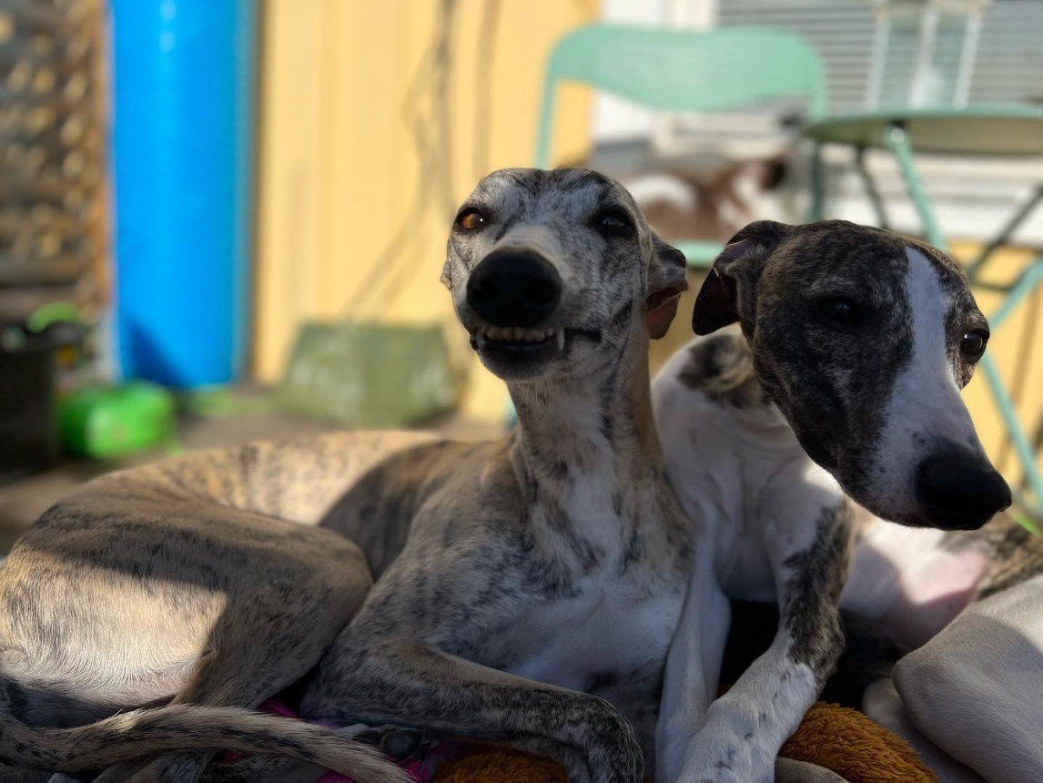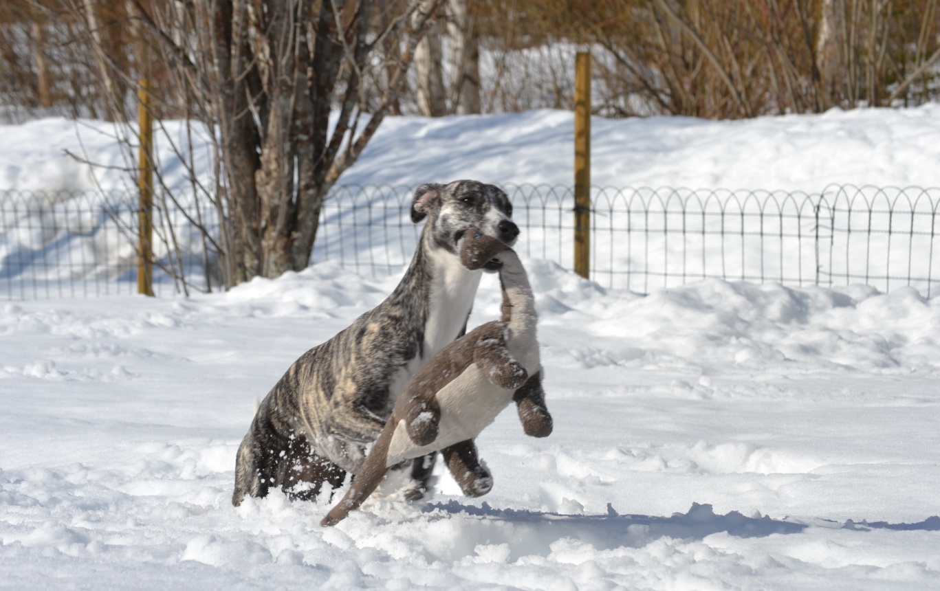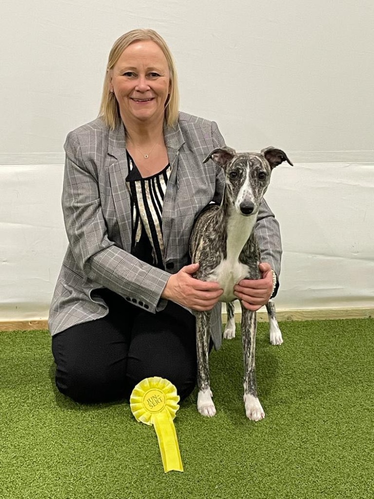 Det kom en leende hälsning från Polly med ägare. Kan man bli annat än glad av denna lyckliga whippet?!