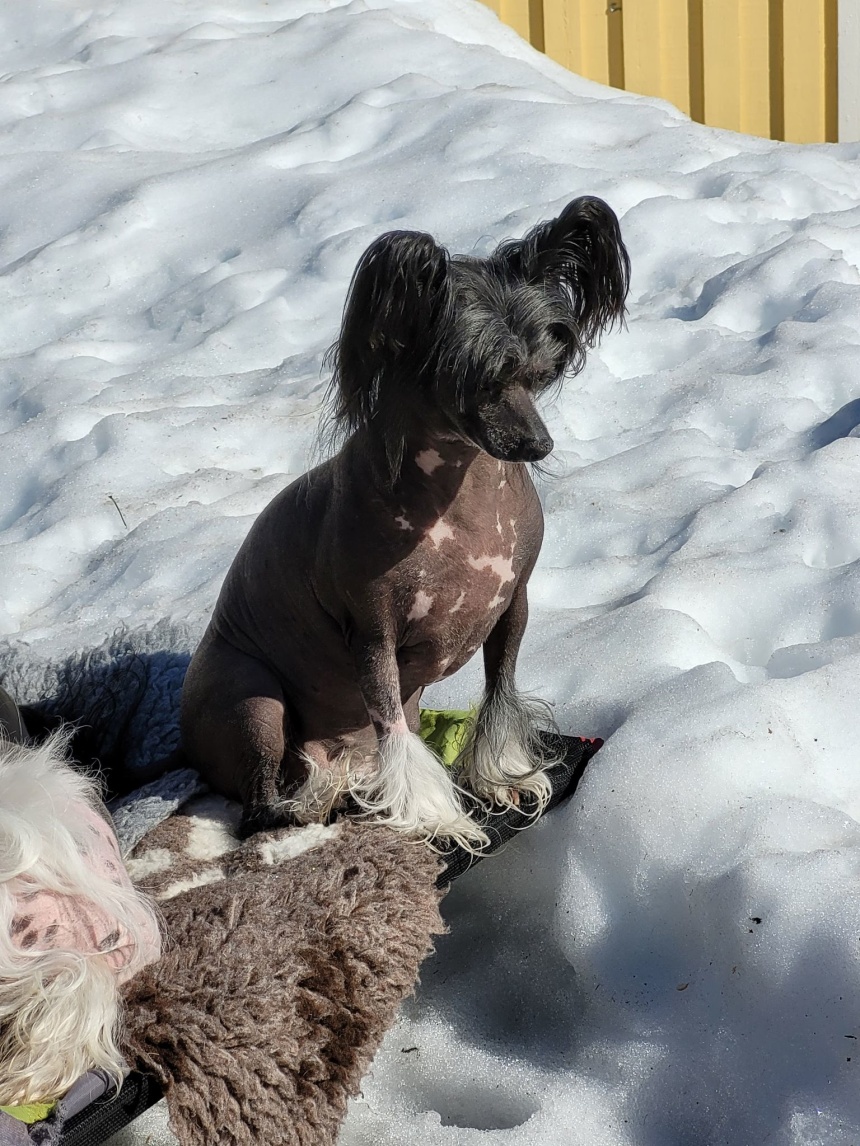 Iris har lyxen med att ha en inglasad balkong i sitt hem, så hon solar och har det skönt. Hon har börjat få läckra "spottar" på kroppen, ska bli kul att se hennes sommarfärg.