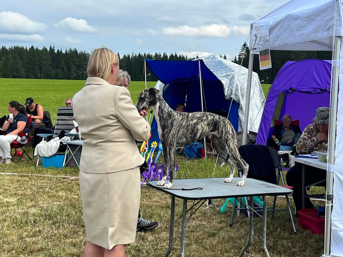 INT utställning Oulu, domare; Hans Almgren, där han vinner juniorklassen med CK, blir bästa hane, BIM med CERT & BIM-junior med junior-CERT!