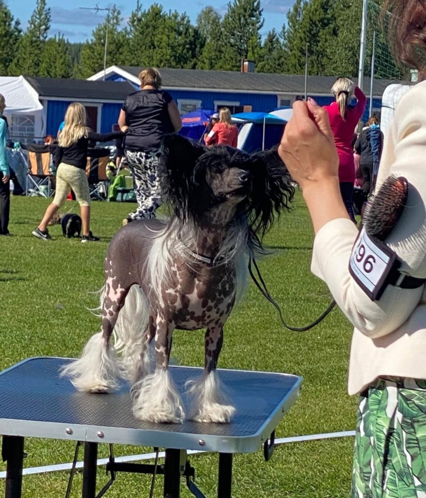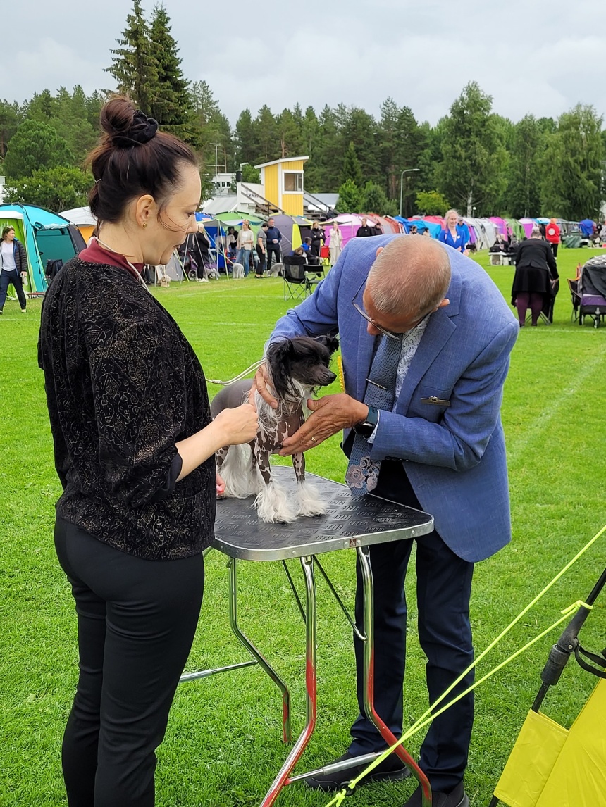 13/8 Nat. Överkalix, domare på chinese crested dog Siv Sandö, Norge