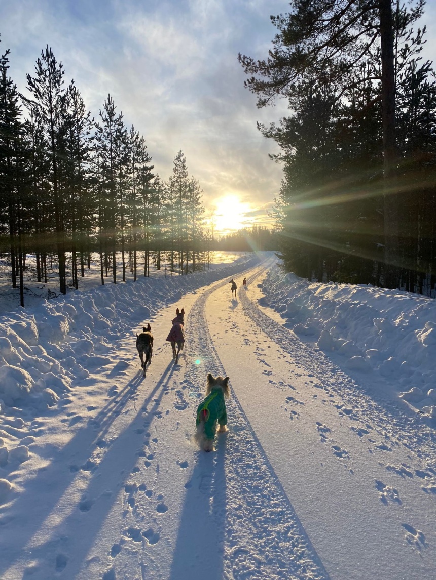Det är fortfarande ruggigt kallt, över -20 grader till och från. Januari var ännu kallare under en lång period så här hos oss blev det mest mys inne vid brasan och korta, snabba svängar ute. Det känns nästan som man varit i ide, de lediga helgerna har jag tillbringat all tid hemma med hundarna, eldat i kaminen och bara laddat energi. Strumpan börjar bli gamml, hon fyller 14 år nästa månad .. lilla fina snälla tanten.